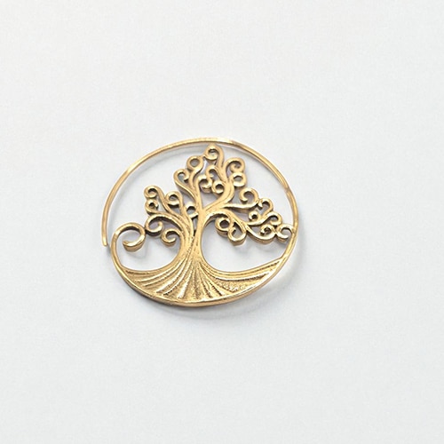 Élégantes Boucles d’oreilles arbre de vie en laiton doré pour un style boho chic.