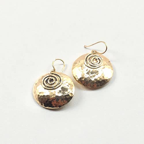 Éclat bohème et artisanat indien dans nos Boucles d’oreilles spirale laiton martelé.
