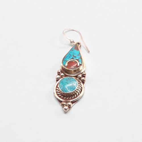 Escale spirituelle avec les Boucles d’oreilles turquoise cabochon laiton style himalaya.