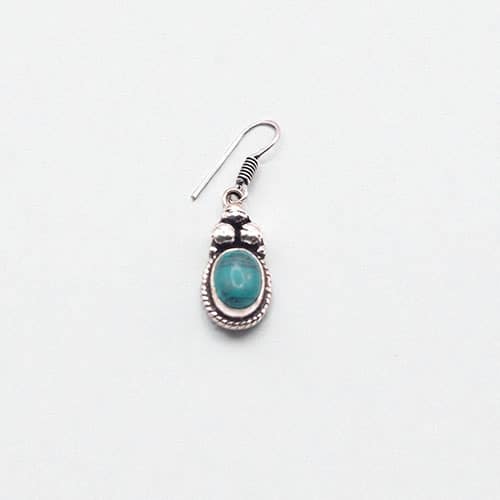 Pendantes ovales turquoise tibétains, bijou boho indien unique.